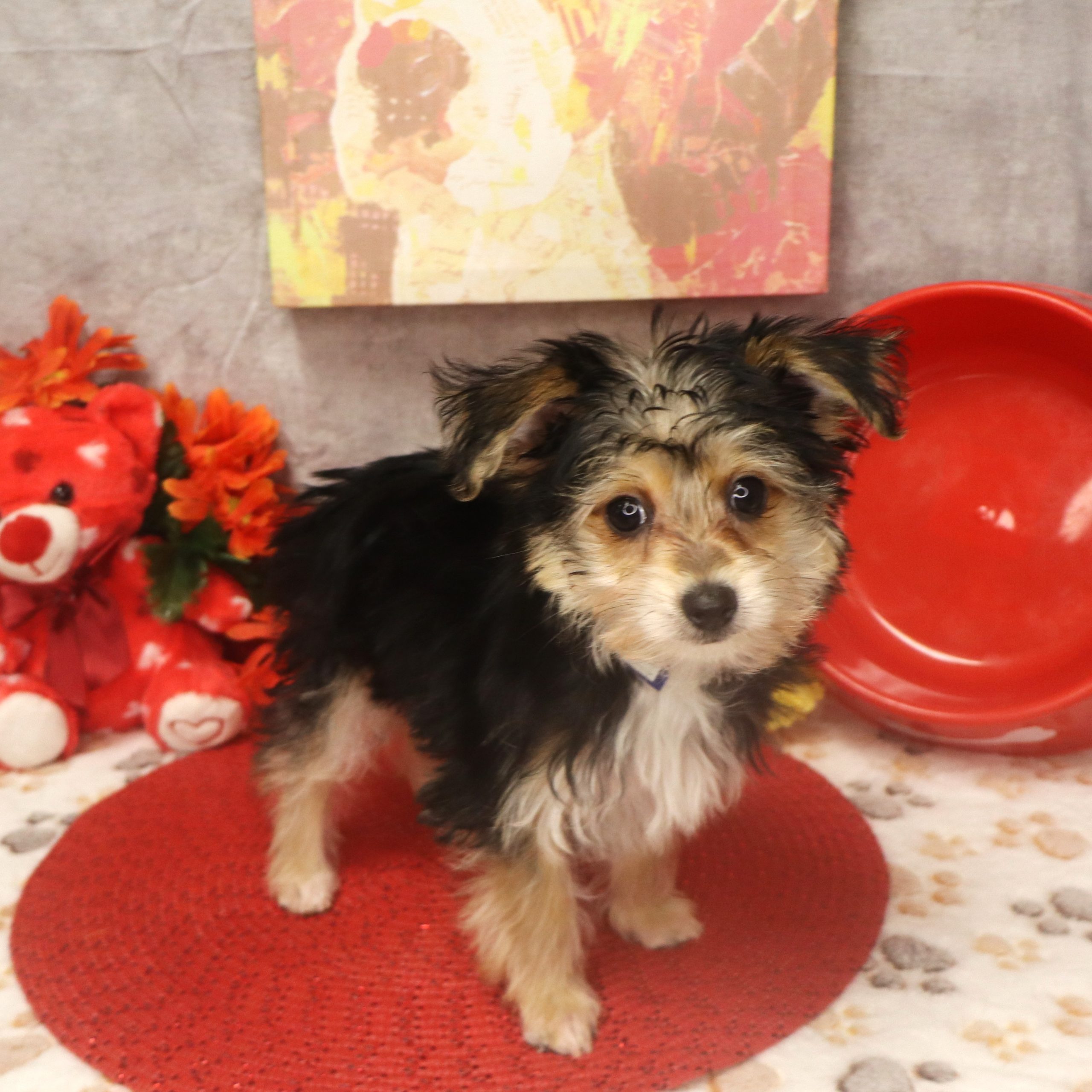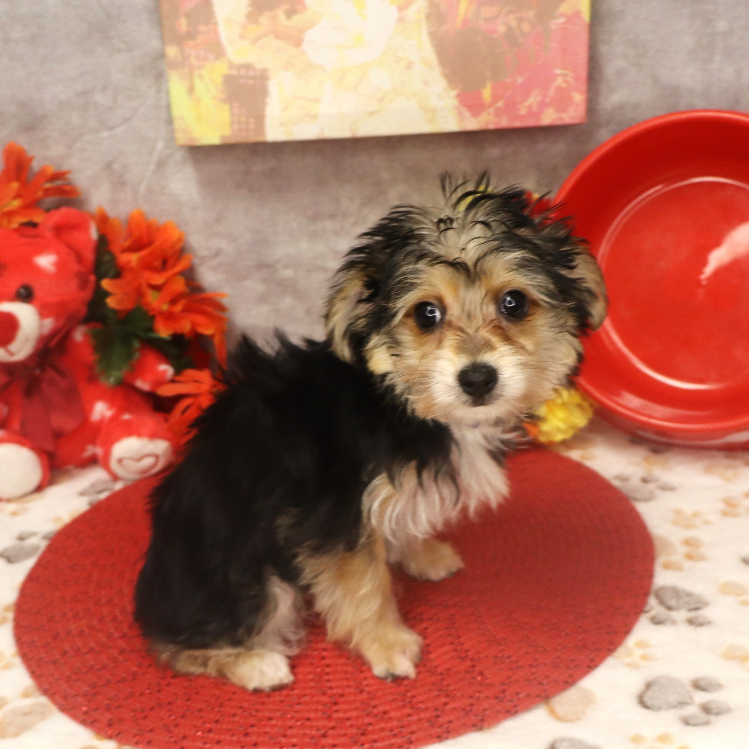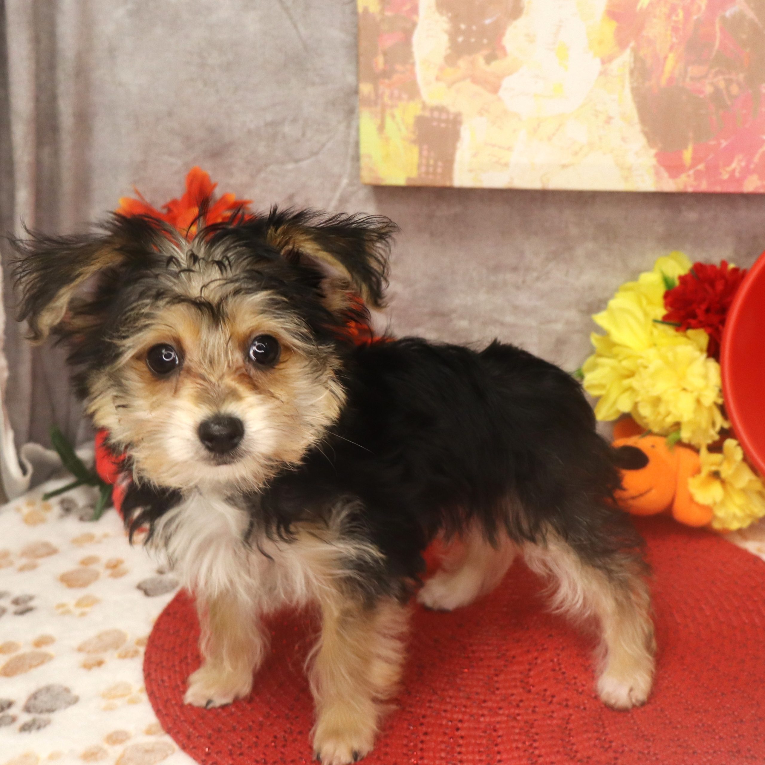 There are 3 in this litter, 1 male and 2 females. Debbie is a white AKC registered  Bichon Frise, and she weighs 11#. Jimmy is a black tan ACA registered Yorkshire Terrier, and he weighs 5.8#.